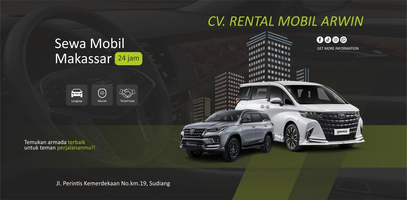 Rental Mobil Arwin adalah penyedia layanan sewa mobil murah di Makassar yang berkomitmen untuk memberikan kenyamanan dan kepuasan maksimal bagi pelanggan. Dengan berbagai pilihan kendaraan mulai dari city car, SUV, hingga minibus, kami siap memenuhi kebutuhan transportasi Anda, baik untuk keperluan pribadi, bisnis, maupun wisata.