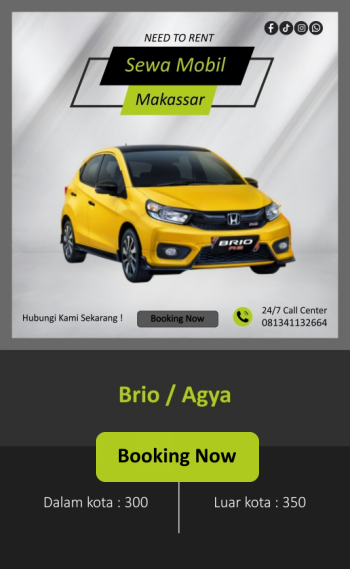 Rental Mobil Arwin adalah penyedia layanan sewa mobil murah di Makassar yang berkomitmen untuk memberikan kenyamanan dan kepuasan maksimal bagi pelanggan. Dengan berbagai pilihan kendaraan mulai dari city car, SUV, hingga minibus, kami siap memenuhi kebutuhan transportasi Anda, baik untuk keperluan pribadi, bisnis, maupun wisata.
